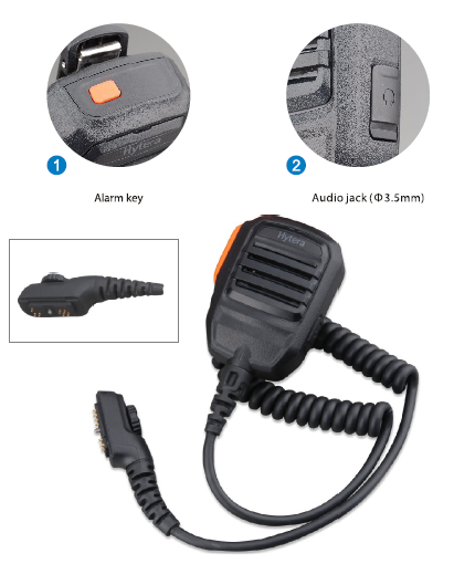Externý reproduktor / mikrofón pre rádiostanice Hytera radu PD7xx a PD9xx s krytím IP67. Mikrofón je vybavený núdzovým tlačidlom, otočným klipom pre upevnenie na odev a konektorom typu jack 3,5mm pre pripojenie slúchadiel.
