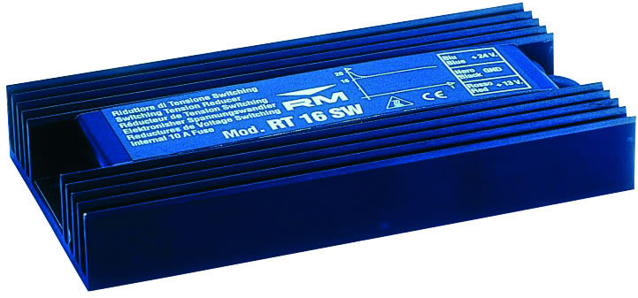 Elektronicky riadený DC / DC menič. Vstupné napätie 20-30V DC, výstupné napätie 12V, prúd 16 A dlhodobo, 20A krátkodobo, stabilita 1%, účinnosť 85%, zvlnenie max. 50mV.