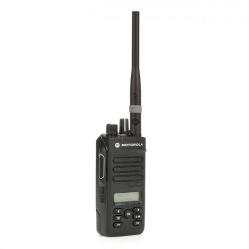 Profesionálna ručná rádiostanica (vysielačka) Motorola MOTOTRBO ™ DP2600e VHF 136-174 MHz (model MDH02JDH9VA1AN typ PANR302F) určená pre duálnu (analog / digital) prevádzka s krytím IP67. Rádiostanicu Motorola DP 2600 VHF s displejom a funkčnými a navigačnými tlačidlami je možné nastaviť pre prevádzku až na 128 kanáloch s vysielacím výkonom až 5W. Motorola DP2600 e VHF ponúka základné, ale najpoužívanejšie funkcie a možnosť digitálnej prevádzky v strednej cenovej kategórii. V analógovom režime je podporovaná selektívna voľba Sel5, v digitálnom je možné aj individuálne volanie na stanice z volacieho zoznamu. Základné balenie DP2600e obsahuje aj stolný nabíjač, nabíjaciu LiIon 1650mAh batériu s klipom na opasok, širokopásmovú VHF anténu a krytku konektora externého audio príslušenstva.