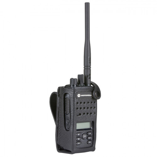 Puzdro z tvrdej kože s opaskovým okom 3 "(7,62 cm) typ PMLN5863 pre profesionálne digitálne rádiostanice (vysielačky) Motorola DP2000 radu vybavené displejom a navigačnými tlačidlami - DP2600 a DP2600e.