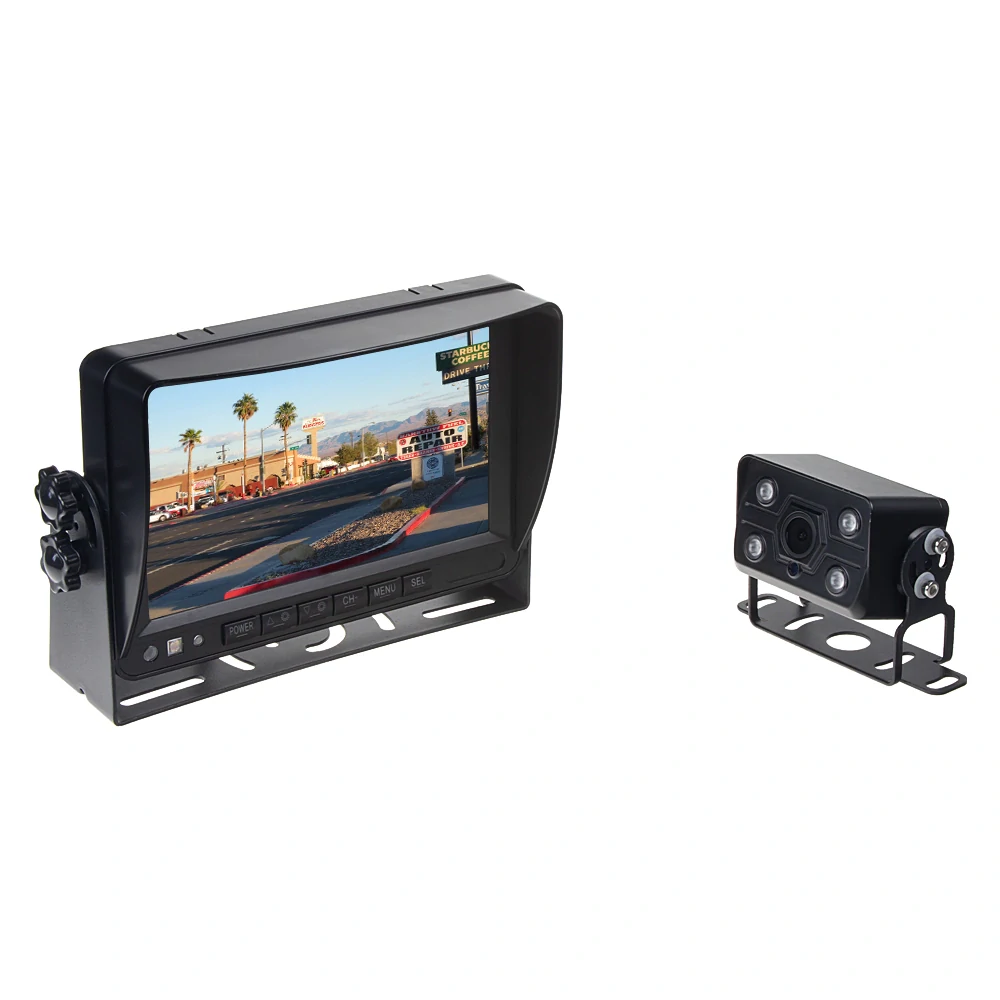 AHD LCD monitor 7" so slnečnou clonou, záznamom z 2 x 4 PIN vstupu pre AHD kamery na SD kartu vhodný napríklad do autobusov či nákladných vozidiel a dodávok. V balení je 7" LCD AHD monitor + AHD kamera + 15 m prepojovací kábel 4PINový + diaľkové ovládanie + 2x držiak monitora.