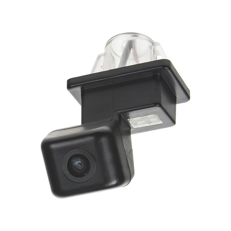 Farebná kamera s LED osvetlením pre ŠPZ.Je určená na zabudovanie do osvetlenia nad zadnú registračnú značku Mercedes. Vhodné napr. pre kombináciu s monitorom, alebo s adaptérmi mi-xxx na pripojenie k originálnej navigácii. Kamera zároveň zobrazuje pomocné trajektórie pre parkovanie (voliteľné).Montáž: vyberiete 1 lampičku nad zadnú ŠPZ a namiesto nej vložíte do originálneho otvoru túto kameru.