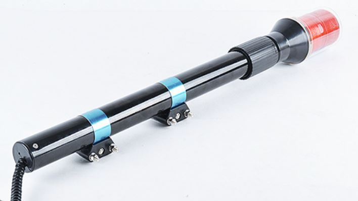 Profesionálny oranžový LED maják s výrazným výstražným efektom, s teleskopickou tyčou, určený na montáž na motocykel.