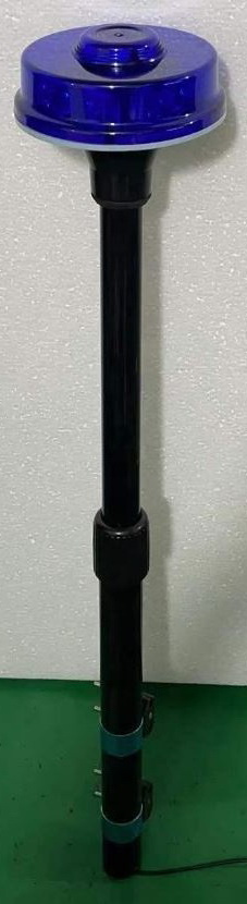 Modrý LED maják s výrazným výstražným efektom, špeciálna optika (šošovky) s teleskopickou tyčou, určený pre montáž na motocykel.