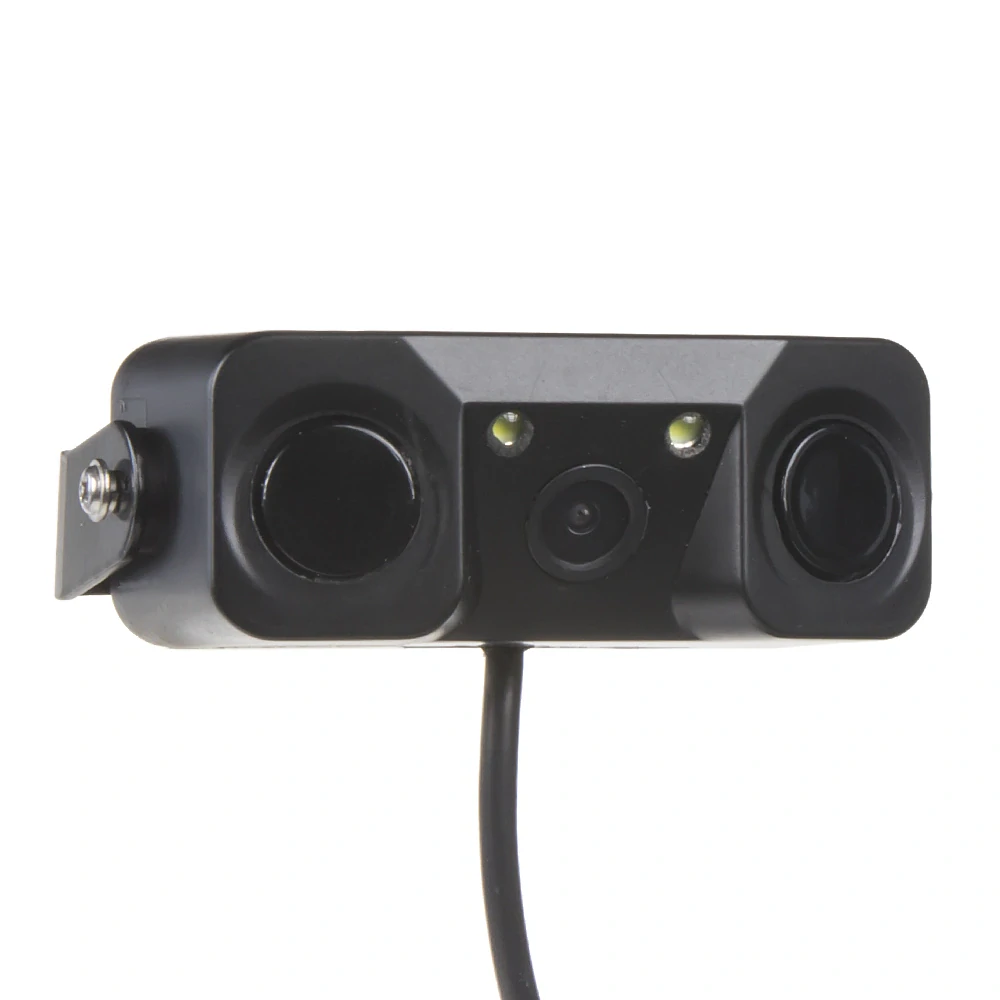 Parkovací systém zadný s 2 senzormi zabudovanými v kamere je určený na detekciu prekážok za vozidlom.Systém je aktivovaný pri zaradení spiatočky.Signalizácia prebieha akusticky a opticky na akomkoľvek pripojenom displeji LCD alebo autorádiu s LCD a číselným zobrazením vzdialenosti.Na displeji sa zobrazuje trajektória. Kompatibilný s akýmkoľvek monitorom s video vstupom AV.