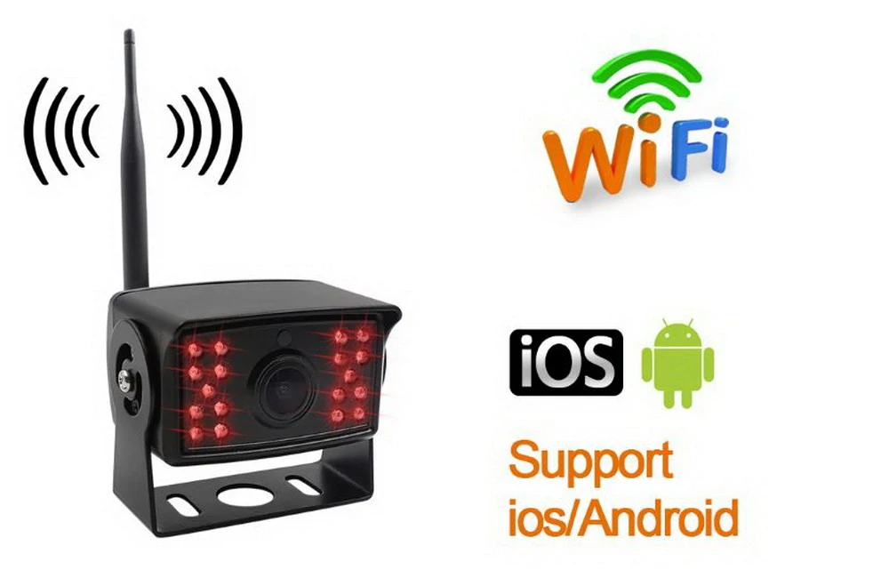 Wi-Fi bezdrôtová kamera umožňuje prenos video signálu kamery do iPhone, iPadu alebo telefónu/tabletu so systémom Android na vzdialenosť až 30-50 m.
