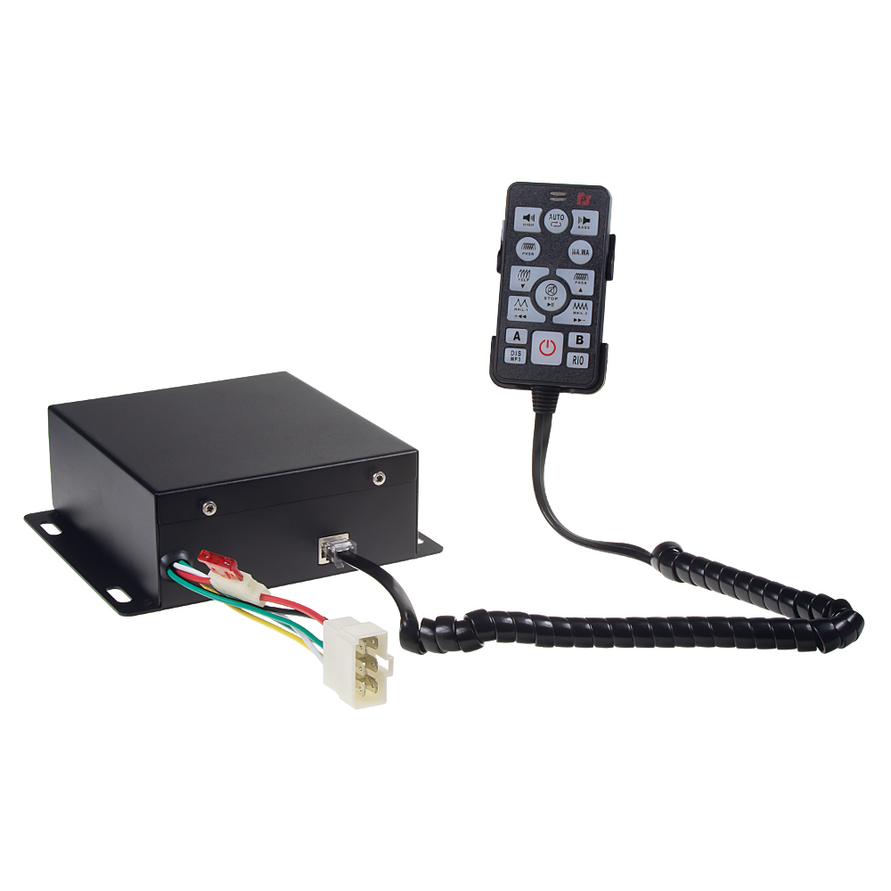 Profesionálny výstražný systém obsahuje modul s nahranými zvukmi sirény + ovládač s integrovaným mikrofónom. Spínanie dvoch svetelných zdrojov. Jednotku je možné umiestniť mimo dosahu – ovládač je na kábli. Tento výstražný systém je možné využiť vo vozidlách napr. pre organizačnú činnosť.
