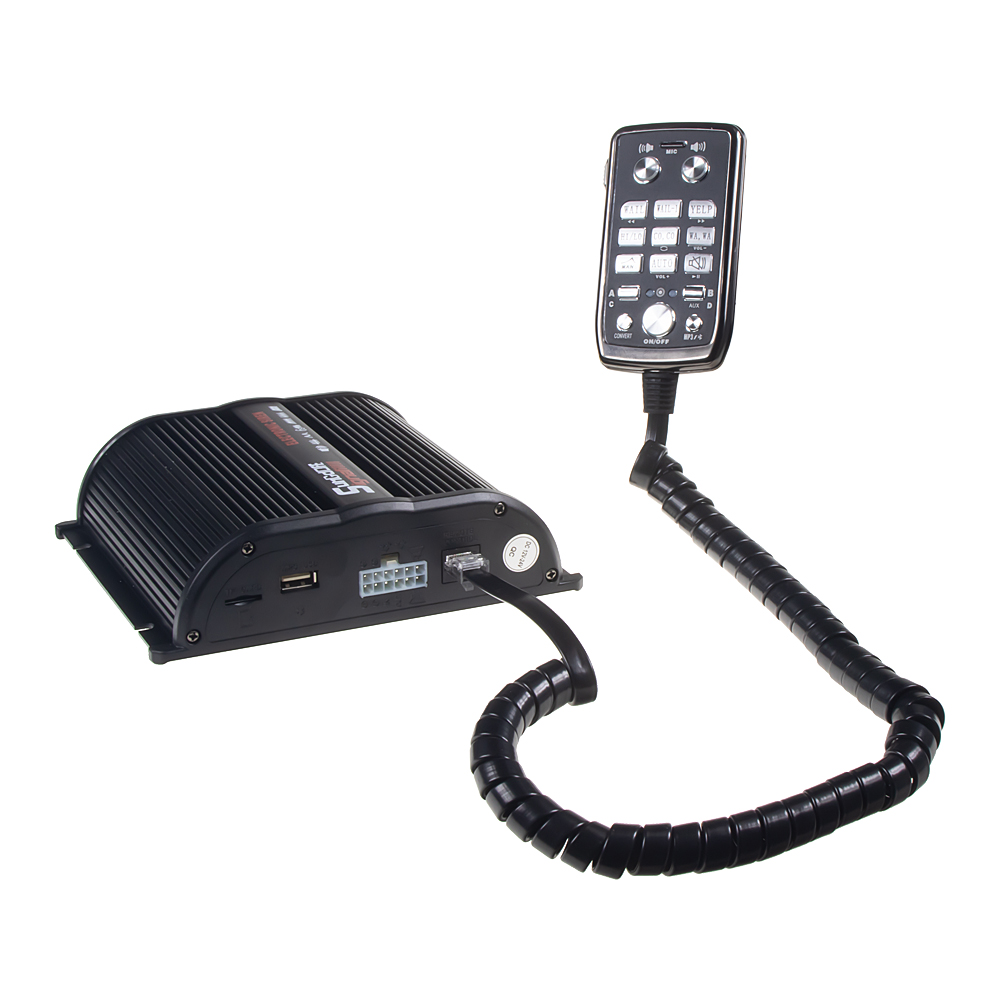 Profesionálny výstražný systém obsahuje modul s nahranými zvukmi sirény + možnosť prehrať súbor MP3 s USB/SD slotu + Bluetooth a ovládač s integrovaným mikrofónom. Spínanie dvoch svetelných zdrojov. Tento výstražný systém je možné využiť vo vozidlách napr. pre organizačnú činnosť.