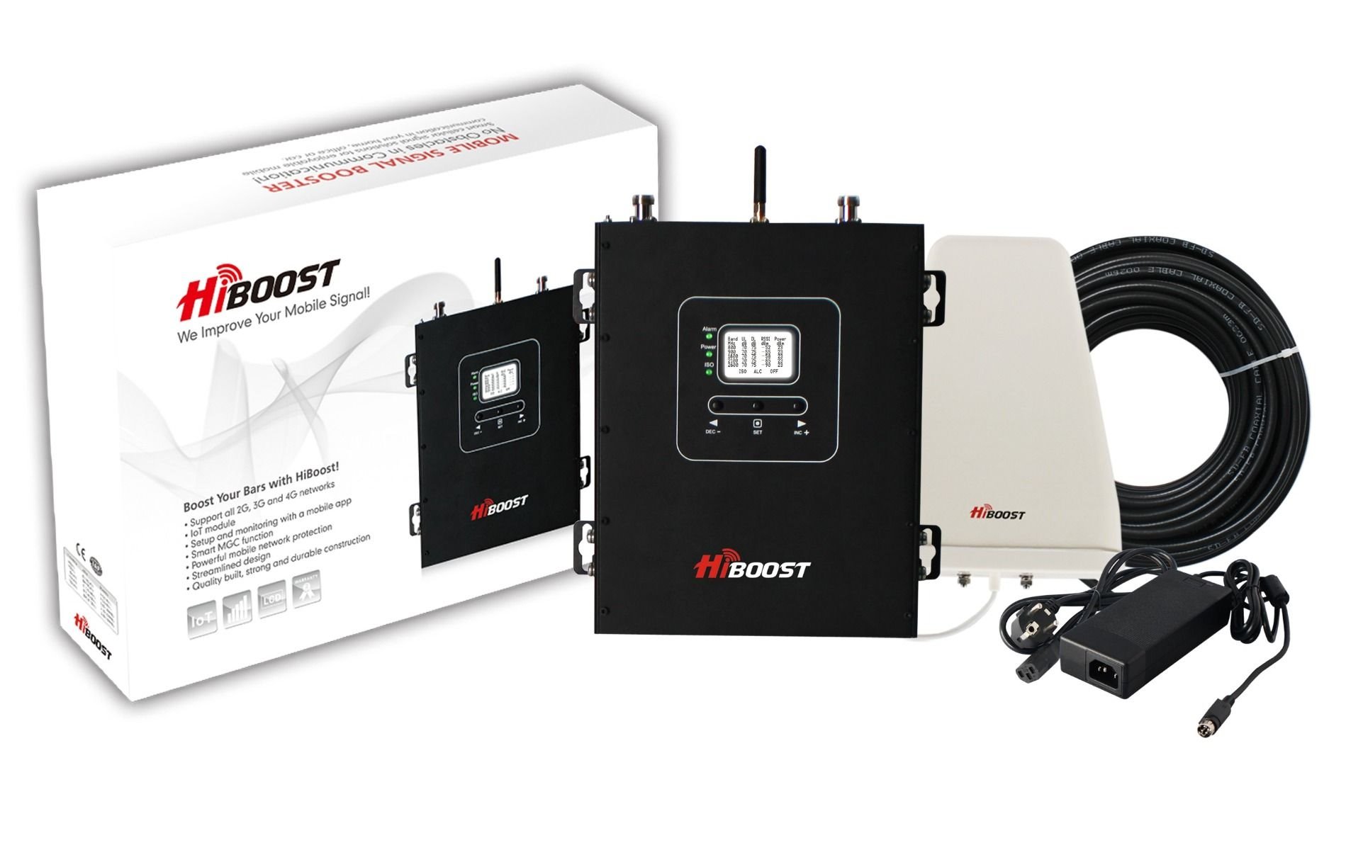 - GSM repeater set HiBoost Hi23-5S pentaband, LTE800, EGSM900, DCS/LTE1800, WDMA2100, LTE2600